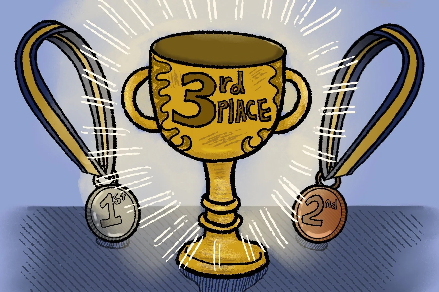 A practice editorial illustration about winning third place.